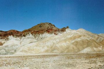 Chevrons im Death Valley, Arizona Durch Konzentration des Wasserabflusses auf wenige Rinnen verursachen Spülprozesse die Ausbildung von Formen mit dem Grundriss gleichschenkliger Dreiecke. Diese als Chevrons bezeichneten Formen sind charakteristisch an Hängen in Trockengebieten. Bei unterschiedlicher Resistenz der Gesteinslagen zeigen Chevrons eine deutliche Stufung. |